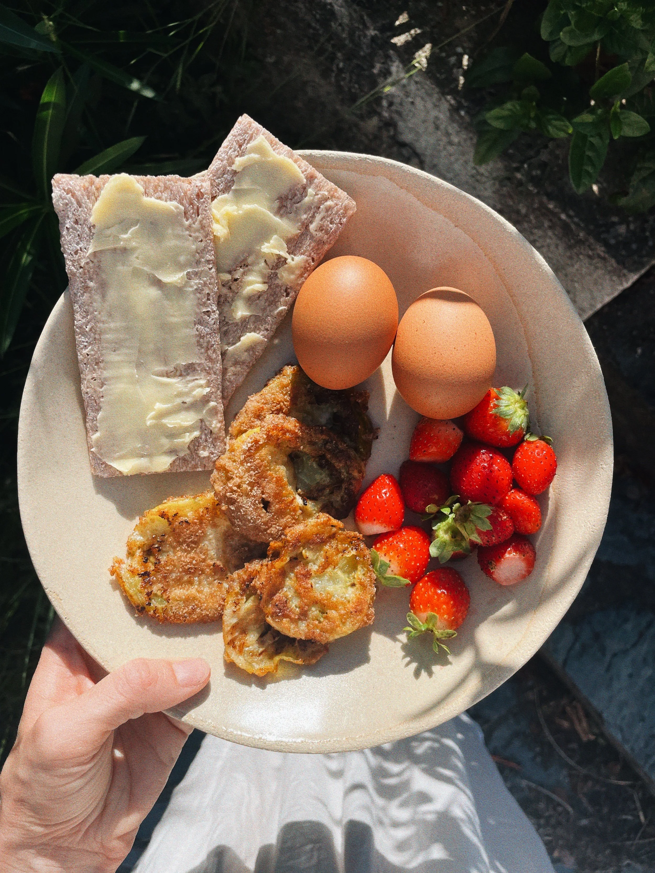 Tremper les tomates vertes découpées en tranches dans de la farine de petit épeautre puis dans de l'oeuf battu et enfin dans de la chapelure faite maison réalisée idéalement avec un bon pain au levain ( à mixer rapidement au blender, vous pouvez aussi utiliser du pain des fleurs pour une option sans gluten, j’aime bien le multicéreales car il ne contient pas de sucre ajouté). Pour plus de gourmandise, ajouter du parmesan rapé grossièrement à la chapelure. Cuire dans de l'huile d'olive jusqu’ à ce quelle soit bien dorée. Bien égoutter avant de servir.